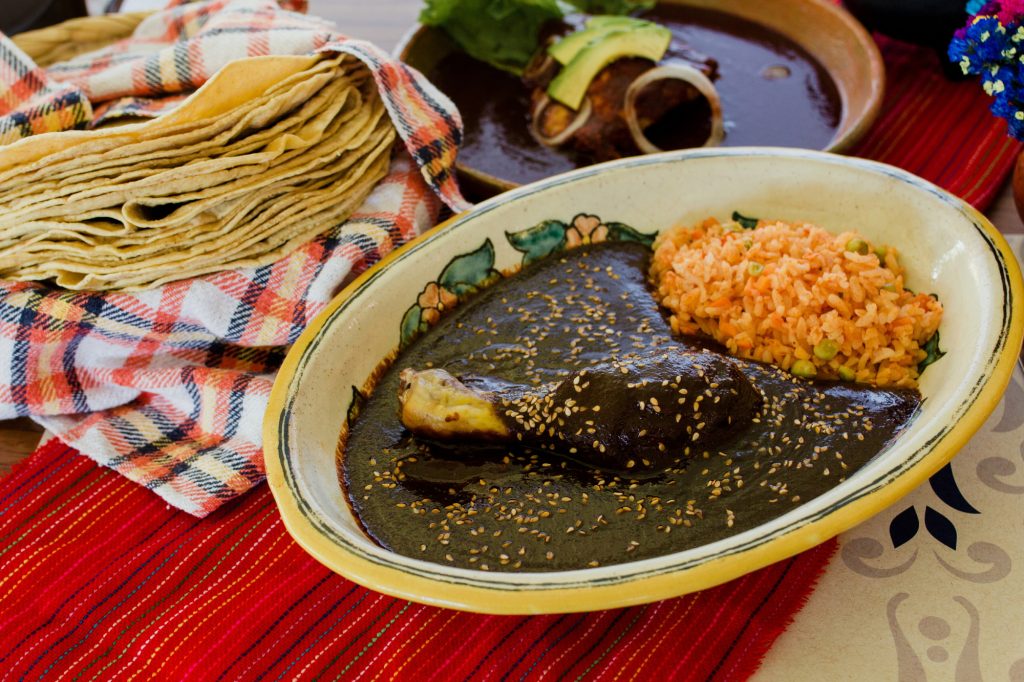 But the traditional Cinco de Mayo dish is none of those. Invented in the late 17th century, the mole poblano is a bitter chocolate cream with chili peppers and other spices. In Mexico, it is served with chicken, and they usually eat it with rice.