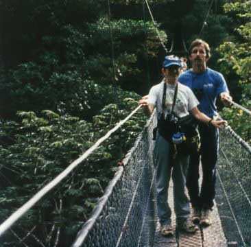 Muchas personas viajan a los trópicos latinoamericanos para visitar las selvas y bosques de nubes y ver una amplia gama de insectos, plantas, aves y otros animales que parecen exóticos a ojos norteños. Uno de esos lugares es la Reserva de Bosque Nuboso Monteverde en Costa Rica. Allí el visitante puede caminar en puentes suspendidos sobre pequeños barrancos y observar la vida en los doseles medio y superior, donde vive el 90% de todos los organismos. Uno ve orquídeas, bromelias, helechos y enredaderas en los troncos y ramas de los árboles. Estos forman una infraestructura para las plantas que deben escapar de la oscuridad del suelo y crecer hacia la luz. Con suerte, puede verse el quetzal multicolor de larga cola posado en las alturas del dosel. Después de un día en el dosel, es difícil regresar al mundo de abajo.