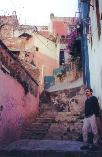 The city of Guanajuato, Mexico, is a medium sized town compressed in the bottom of a narrow valley and surrounded by very hikeable mountains. Most traffic is routed under the city, which makes the twisting streets and narrow cobbled walkways a pleasure to explore on foot. Shady plazas and plazuelas appear every few blocks, and reasonably priced outdoor eateries abound. A year round spring-like climate make it a wonderful place to visit, or perhaps stay and study Spanish at one of several language schools. Periodic flooding has wiped out the town many times, but rich veins of silver made it prosperous, and the river was eventually dammed and diverted.