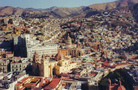 Guanajuato, México, es una ciudad de tamaño mediano comprimida en el fondo de un valle estrecho rodeado de montañas muy apropiadas para ir de excursión. La mayoría del tráfico se encamina debajo de la ciudad, lo que hace que las calles torcidas y las estrechas calzadas empedradas sean un placer de explorar a pie. Las plazas y plazuelas sombrías aparecen cada pocas cuadras, y abundan los restaurantes al aire libre a precios razonables. Su clima primaveral durante todo el año hace de Guanajuato un lugar maravilloso para visitar, o quizás para permanecer y estudiar español en una de varias escuelas de idiomas. Inundaciones periódicas han destruido la ciudad muchas veces, pero ricas vetas de plata la han hecho próspera, y el río eventualmente fue represado y desviado.