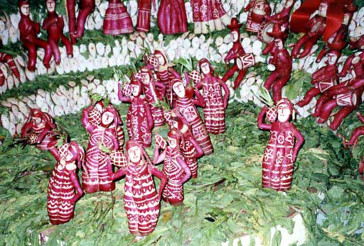 Although the origin of this traditional contest is lost in the mists of time, we do know that the Spanish brought radishes and other vegetables to Mexico in the 16th century. Legend speaks of two monks that encouraged the natives to cultivate crops for subsistence and for sale. One friar suggested that as a way to entice people to the local market, they carve radishes into fanciful shapes and display them along with the produce they hoped to sell. Three centuries later, in 1897, the mayor of Oaxaca formalized what had become a yearly tradition, and the exhibition has been held ever since.