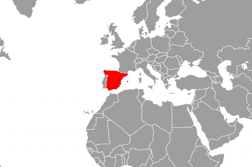 Spain includes the main area highlighted in the map above, located in Southwestern Europe.
