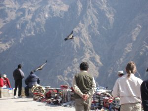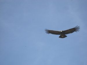 The experience of having a 30 pound bird with a 10 foot wingspan glide by us was amazing. A member of the vulture family, the condor is the largest flying land bird in the western hemisphere. Once aloft, they rarely flapped their wings. Watching them soar effortlessly across the sun through the blue Andean sky, it was tempting to romanticize them as creatures that lived in complete freedom as they surveyed their domain from heights of up to 18,000 feet. But the reality was much harsher. They must cover vast distances in the hopes of finding a dead animal, such as a