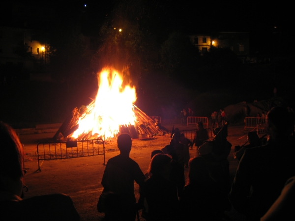 down the streets heading to the main plaza of the town, to witness the yearly Bonfire of San Juan (¨Hoguera de San Juan¨).